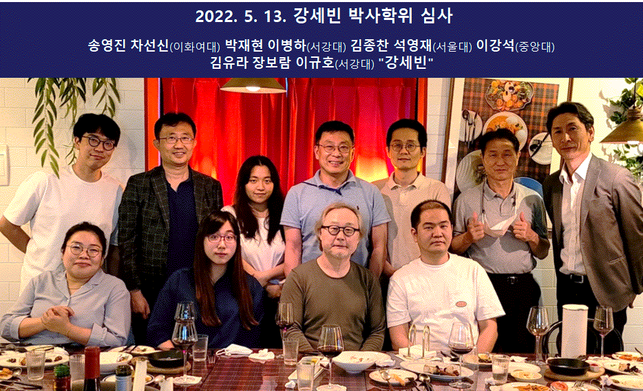 강세빈 박사학위 심사학위 논문: Functional characterization of DctD, the transcription factor essential for biofilm maturation in response to various carbon sources시간: 2022년 5월 13일 (금) 오후 4시장소: K관 403호식사: 마젠타